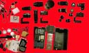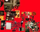 Here's a shot (actually, a number shots) of most of my equipment. It was composed of a number of shots, then pieced together in Photoshop. The first (blue) shot is a full screen shot; the black one is a bit larger, so it will take some scrolling around to see the whole thing. Since the original montage is quite large (larger than what can fit on a single web page), the last four photos (with the red background) show quadrants of the original montage; they are still large enough to require scrolling.