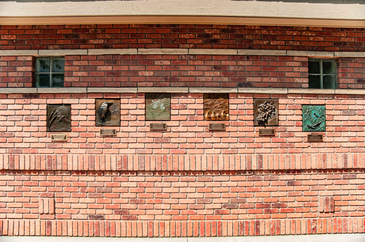 Benson Sculpture Garden - Art on the east wall of the restrooms.