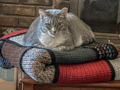 Maggie (5 years old) and Abe (3 years old) - a bonded pair we brought home from the shelter to 2464 Shamrock Drive on August 5, 2022. (The deed to the property is now in their name, but they are letting us AND the dogs live there, out of the goodness of their hearts.) The shelter specified that these two go to a home that did was not a "rambunctious atmosphere" - although, after bedtime hours, and even early evening hours, there is some "rambunction" taking place in the upstairs hallway, and most of it (all of it!) is feline activity, unless the cat toys are fighting back! Abe is the white with black markings, Maggie is the gray. Between the two, we have enough cat hair to cover all of the clothes we wear to work.