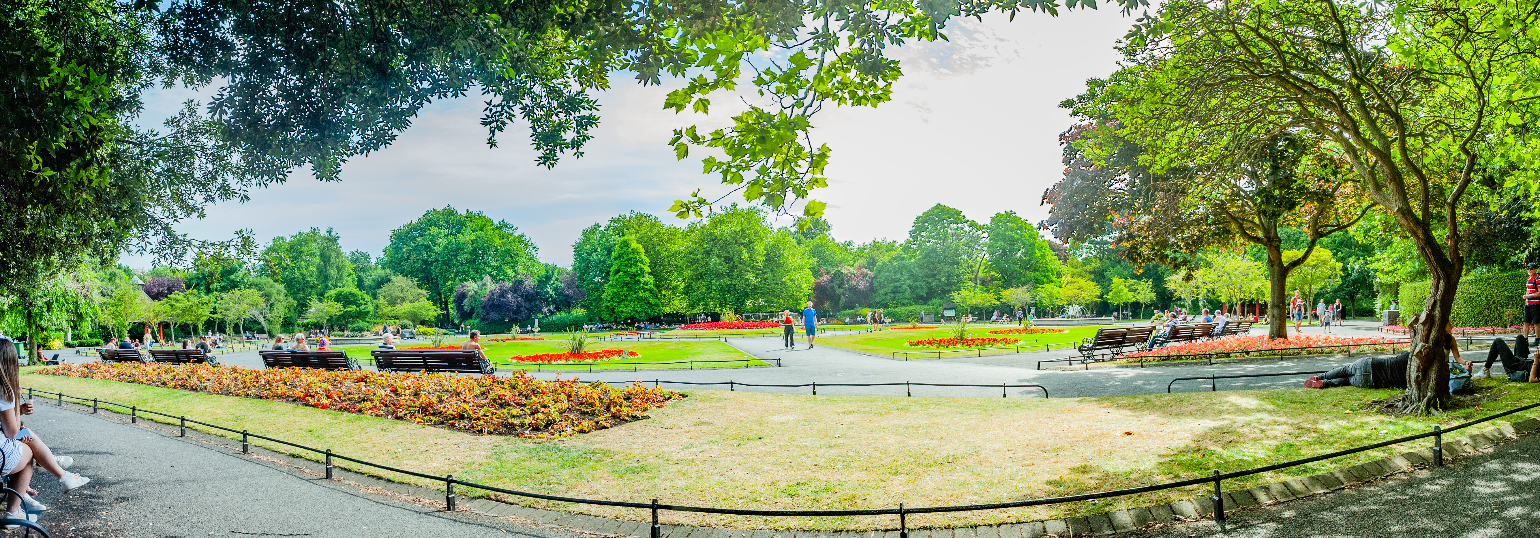 St. Stephen's Green, one of the sites of the Easter Rising of 1916 (this is a 2-piece panorama)
