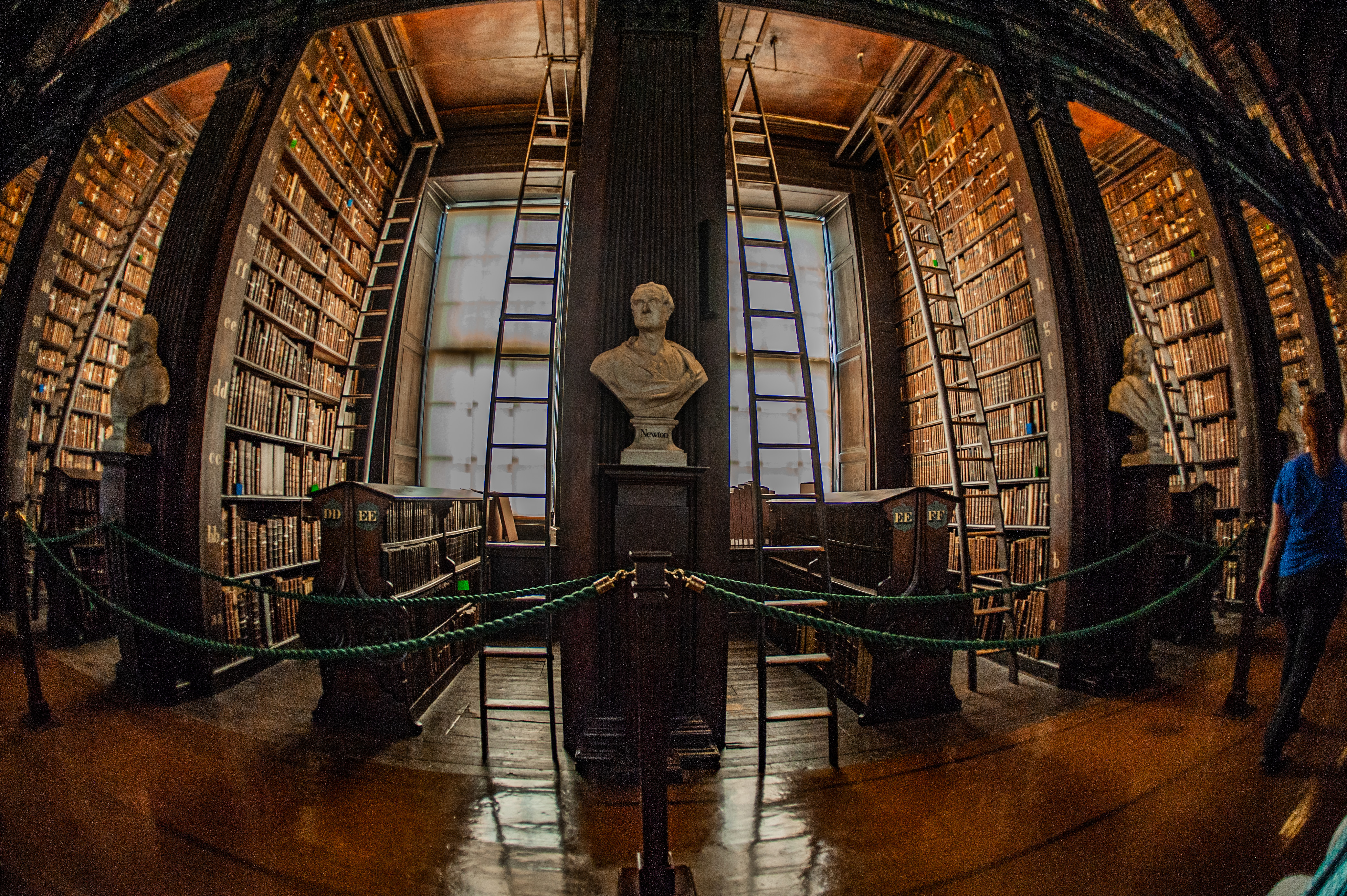 Side view of part of the Long Room. I can see it now: Wanted - seeking librarian who's not afraid of heights. Position to be filled immediately (the last one lost her footing!)