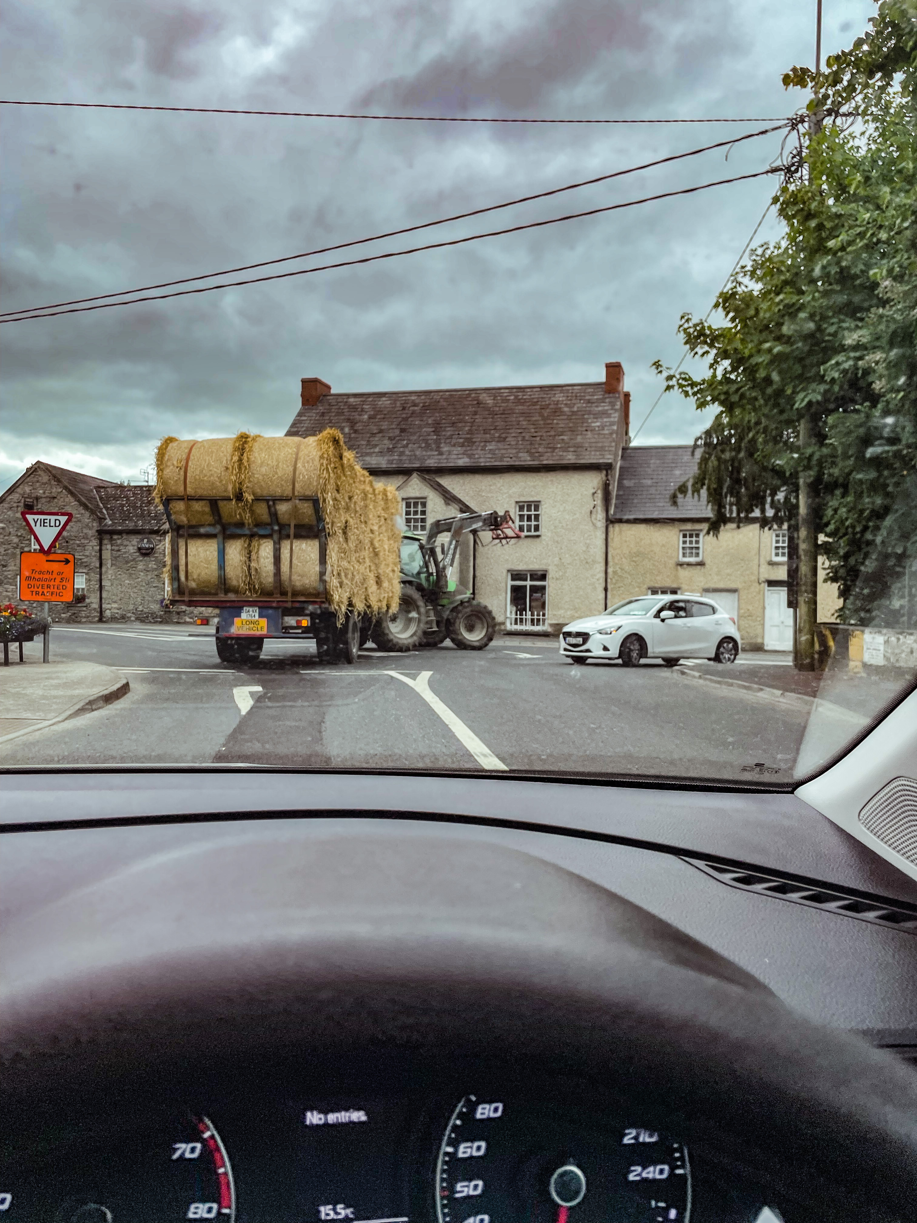 Downtown traffice - tractors - everywhere! Ever-present reminder that they're growing your food.