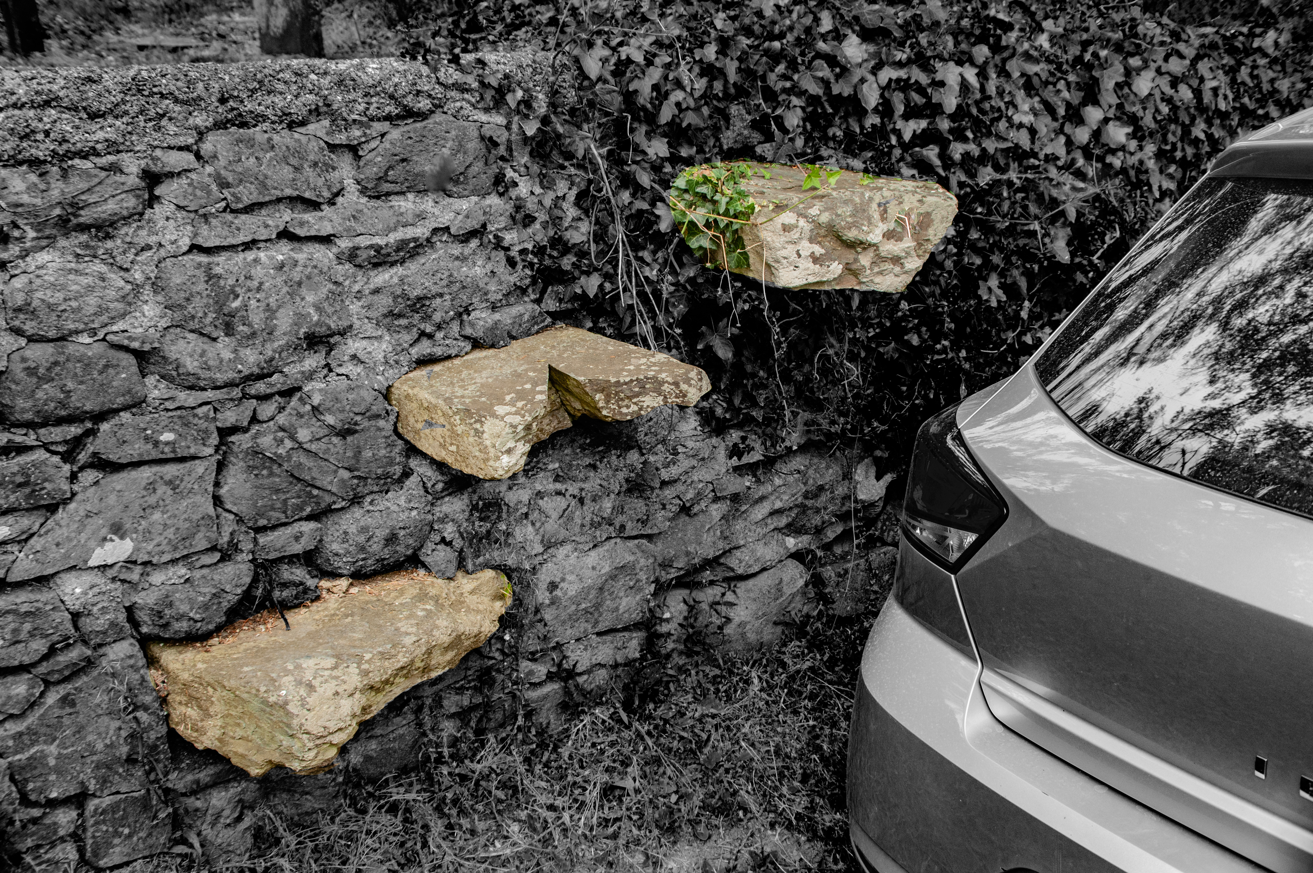 Ballygunner Temple Ruins & Burial Grounds - car-eating rocks alongside the road