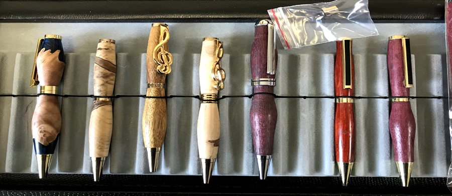 Wood & acrylic, Maple Ambrosia, Olivewood, Maple Ambrosia, walnut, Padauk and walnut.