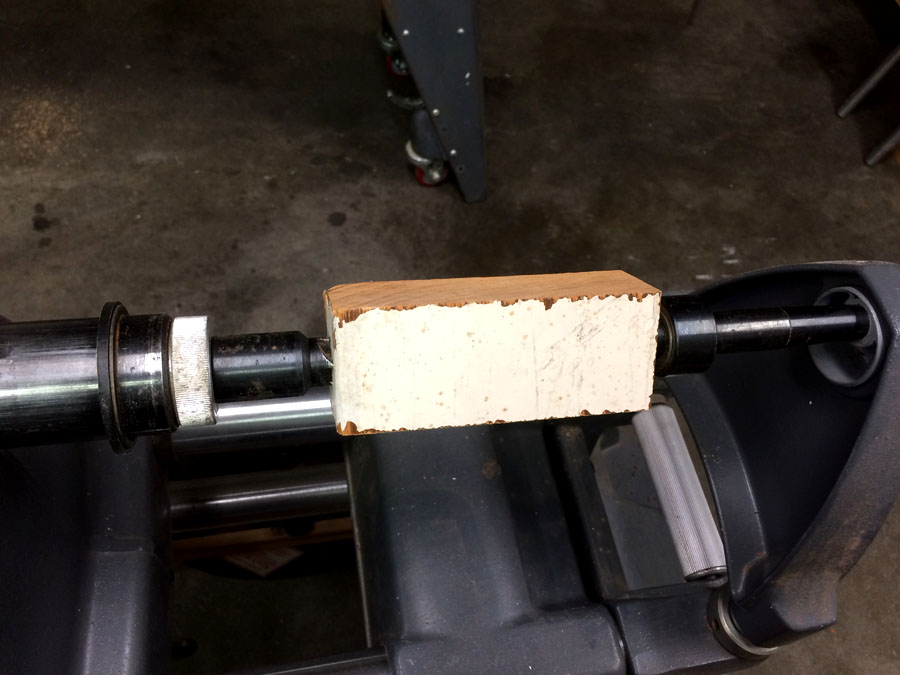 A short/small shop project. There is a hex wrench that is needed everytime one changes a band saw blade (which could be a couple of times per project) A hex key is 1) small 2) easily misplaced and 3) looks a lot like all the other hex keys which are NOT the right size. So I have turned a handle that will solve all those problems, as well as giving me a comfortable grip that will allow me to apply the needed torque without discomfort. Here is the scrap wood from which we started.