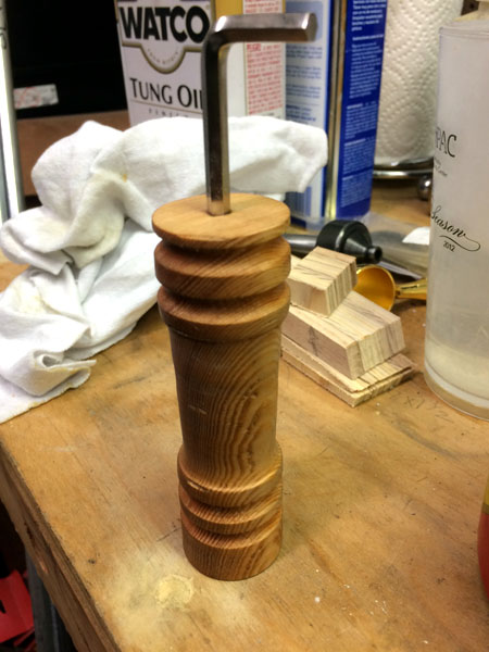 Here is the handle turned, with the hex key secured with epoxy.
