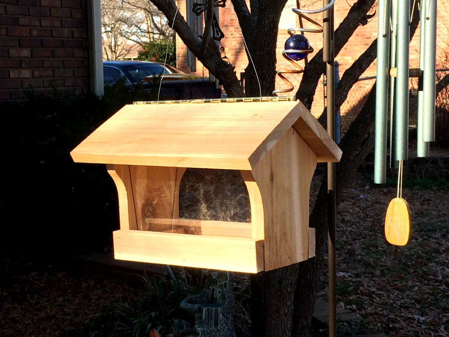 Here it is, in situ. Made from a nice light cedar, which is pretty weather resistant, but not squirrel resistant - they tend to give the soft wood a workout!