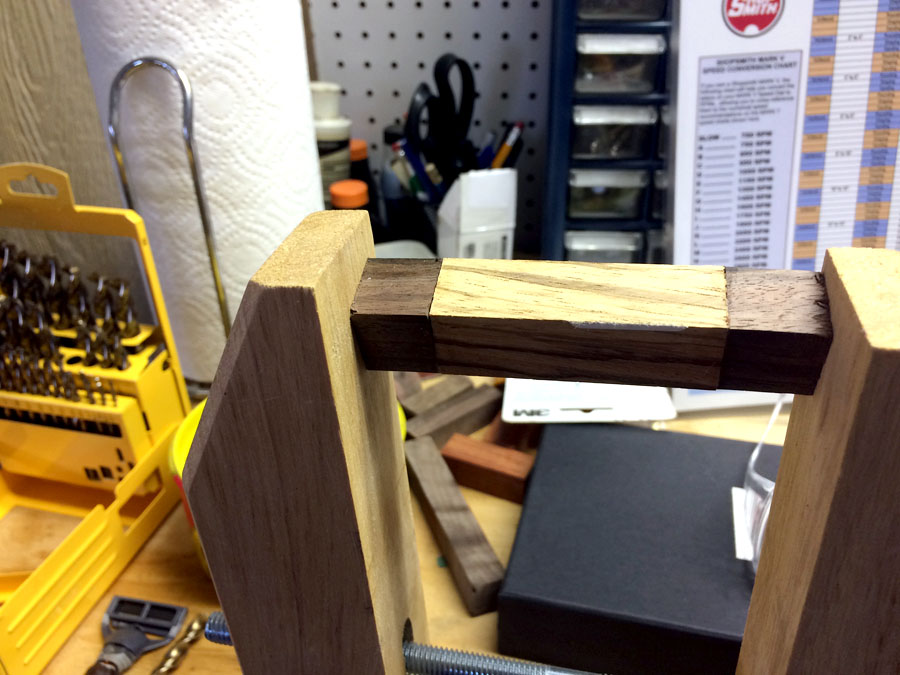 A couple of scrap pieces being glued together, just begging to be turned on the lathe.