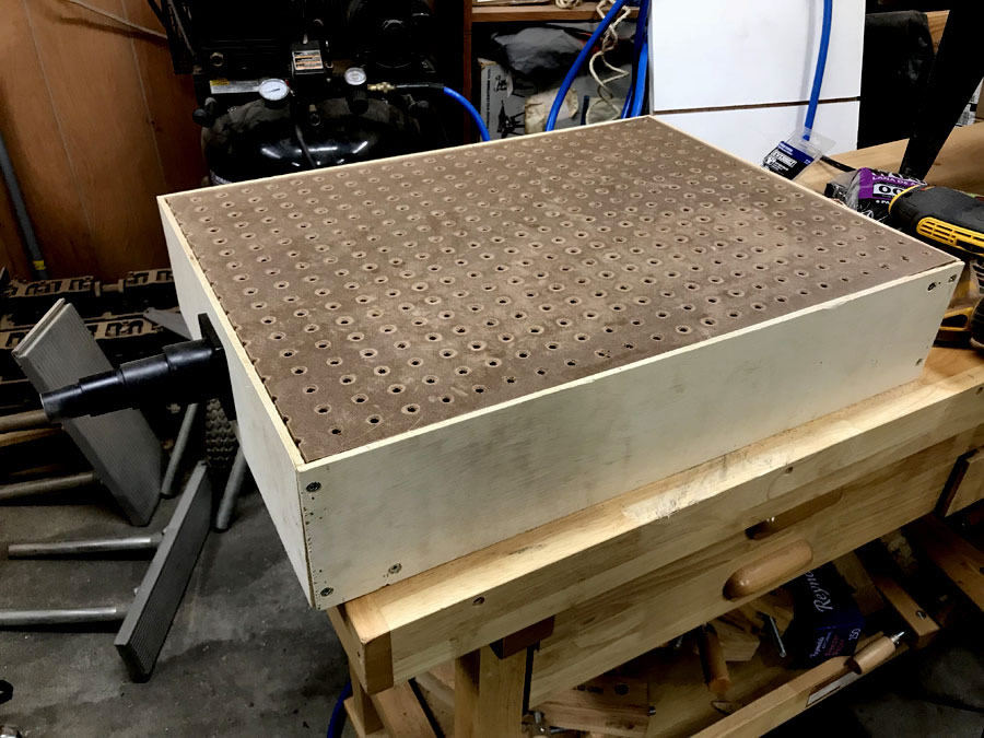 The finished box. The black thing on the end is a shop vac adapter.