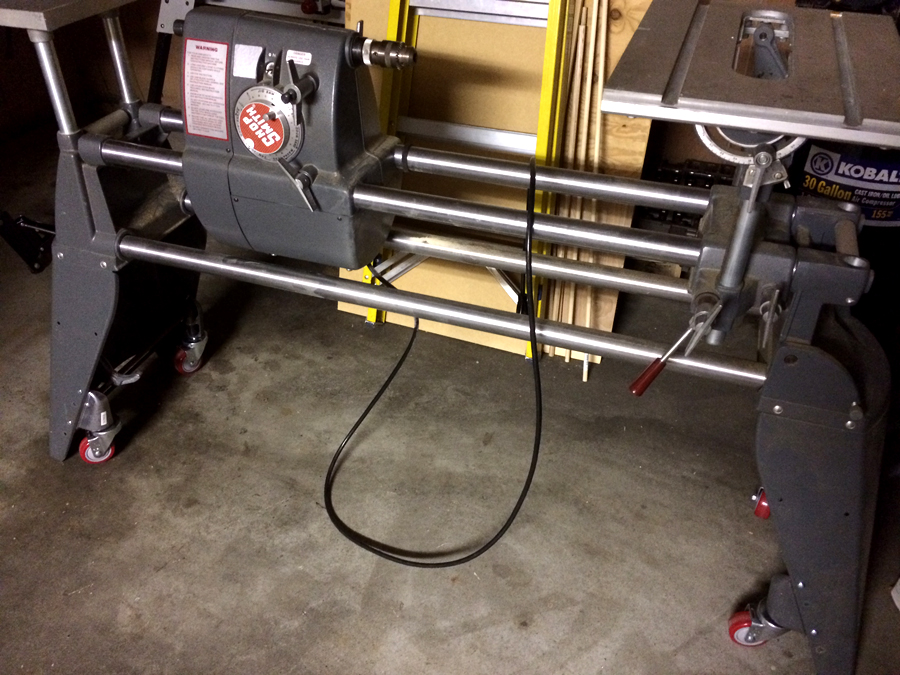 Shopsmith with two utility tables installed.