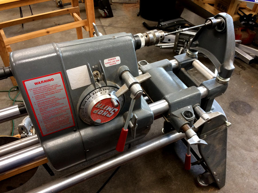 Set up in lathe mode. The mandrel shown is used for turning pens and pencils.