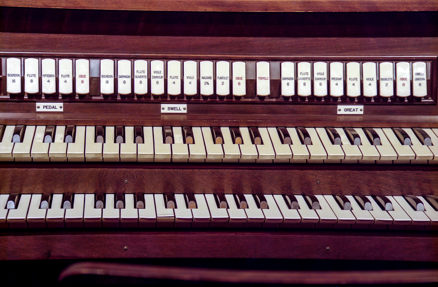 Flute 4’ Viole 4’ Nazard 2 2/3’ Flageolet 2’ Oboe 8’ Tremolo |