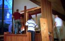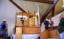Here is a set of progress shots on the re-assembling and additions to the Zimmer organ at Vestavia Hills (a suburb of Birmingham). The sanctuary was expanded, so the organ was re-configured and added to by Milnar Organ Company in 2000. These are the partial rebuilding - completion was done after I left the job site. These photos appear in the order in which they were taken.